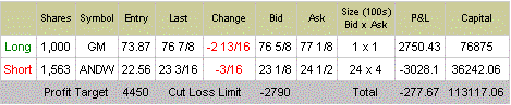 This trade longs 1000 shares of GM and shorts 1563 shares of ANDW. (Shares