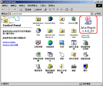 Step 2 - Inside the Control Panel, please start the program "Java Plug-in 1.3.1_04".